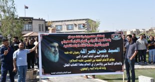 الحرير/ ميسان / كواكب علي السراي برعاية مدير عام شركة نفط ميسان الأستاذ المهندس “حسين كاظم لعيبي” . نظمت” شركة نفط ميسان : اليوم الأحد ٢٠٢٤/٩/٢٩ ، وقفة استنكارية احتجاجا على الجريمة النكراء التي ارتكبها الكــيان الصهيوني الغاصب ، باغتـيال الأمين العام لحـزب الله حجة الإسلام والمسلمين السيد الشـهيد ( …