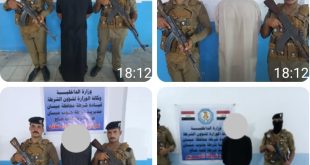 الحرير/ ميسان/سمير السعد تمكنت مفارز مديرية شرطة جنوب ميسان متمثلة بقسم شرطة قضاء قلعة صالح من الاطاحة ب(4) متهمين مطلوبين وفق جرائم القتل العمد والارهاب وذلك من خلال عمليات امنية منفصلة ضمن الحدود الإدارية لقضاء قلعة صالح .وجاءت عمليات القاء القبض وفق معلومات استدلاليّة موثوقة استندت إلى رصد ميداني حدد …