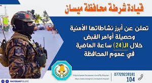 أكمل القراءة »شرطة ميسان : حصيلة نشاطات وفعاليات تشكيلاتها وصنوفها الأمنية خلال ال ٢٤ساعة الماضية