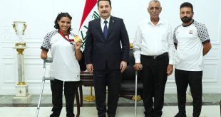 الحرير/ استقبل رئيس مجلس الوزراء محمد شياع السوداني، اليوم الثلاثاء، البطلة نجلة عماد التي حققت للعراق ميدالية ذهبية تاريخية بفعالية تنس الطاولة في بارالمبياد باريس، يرافقها والدها ومدربها جمال جلال، بحضور مستشارة رئيس مجلس الوزراء لشؤون المرأة. وبارك السوداني ما حققته البطلة الذهبية من منجز يمثل اليوم رسالة إنسانية مهمة، …