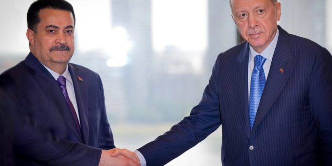 وأوضح السوداني أهمية العمل والتنسيق المشترك بشأن مشروع طريق العراق للتنمية، ومتابعة لمخرجات الاتفاقات ومذكرات التفاهم المشتركة، مشيراً إلى نهج الحكومة بتصفير الملفات العالقة، وحل الأوضاع فيما يخص الحدود المشتركة على وفق الآلية التي جرى بها تأمين الحدود مع إيران، مؤكداً عدم السماح باتخاذ الأراضي العراقية منطلقاً للاعتداء او تهديد أي من دول الجوار.