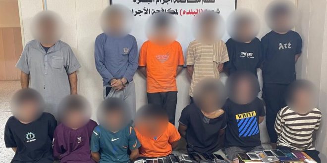 وأوضح اللواء أن عملية المداهمة تمت بعد ورود معلومات دقيقة حول مكان تواجد العصابة، حيث تم تشكيل فريق عمل مشترك من قسم مكافحة إجرام البصرة وقوة سوات. وأسفرت العملية عن القبض على 11 متهماً، فيما حاول رئيس العصابة وأحد أعضائها الفرار، قبل أن تتم ملاحقتهم ومحاصرتهم في إحدى الشركات الخاصة بجمع النفايات.
