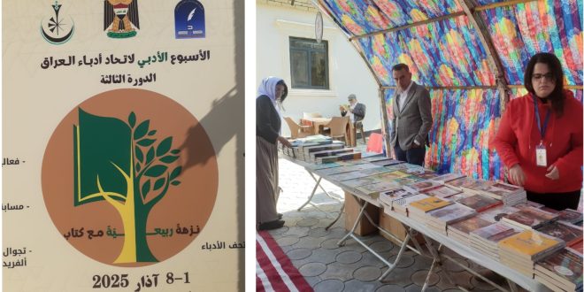 أقام” اتحاد الأدباء والكتاب في العراق الأسبوع الأدبي الثالث تحت شعار ( نزهة ربيعية مع كتاب وللفترة من ١_٨ / ٢ / ٢٠٢٥ , بمشاركة مجموعة من دور النشر والطباعة وبحضور كبير للأدباء والكتاب والمثقفين في العراق , وكانت فعاليات اليوم الأول قد بدأت بافتتاح معرض الكتاب في باحة الاتحاد و الاحتفاء بالثقافة الأيزيديّة .