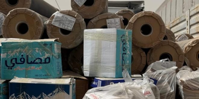 (مشروبات كحولية ،اصباغ شعر،ثلاجات مستعملة ,ملابس جديدة , عازل حراري , مواد احتياطية , مقاطع بلاستك والالمنيوم , رول ورق جدران , مجمدات جديدة ) .